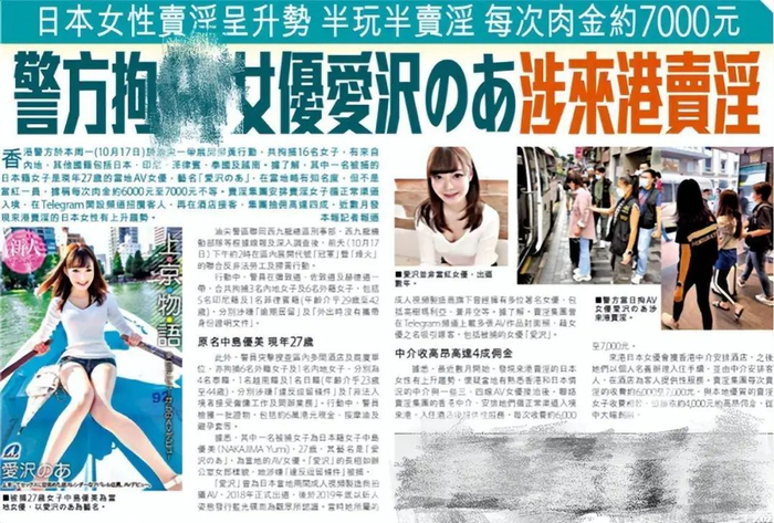 警方调查发现,爱泽因在日本国内压力大,长期无片可拍,为生活所迫,10月初经介绍通过“应召中介”以观光名义来香港赚快钱,黑中介给爱泽安排的出场费在6000-7000港币一次,其中至少4000港币会被抽走。