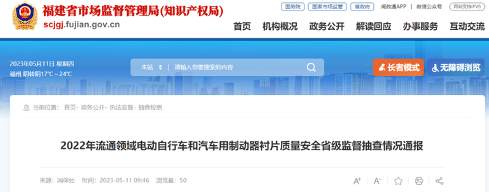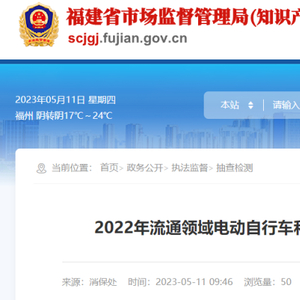 2023年5月11日,福建省市场监督管理局网站通报2022年流通领域电动自行车和汽车用制动器衬片质量安全省级监督抽查情况。九号科技有限公司(标称)、立马车业集团有限公司(标称)、浙江钻豹电动车股份有限公司(标称)等多个品牌产品被检出不合格。