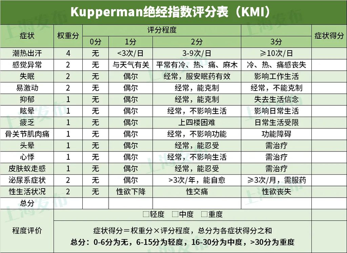可以通过填写下列表格,计算分数,评估自己是否步入更年期↓