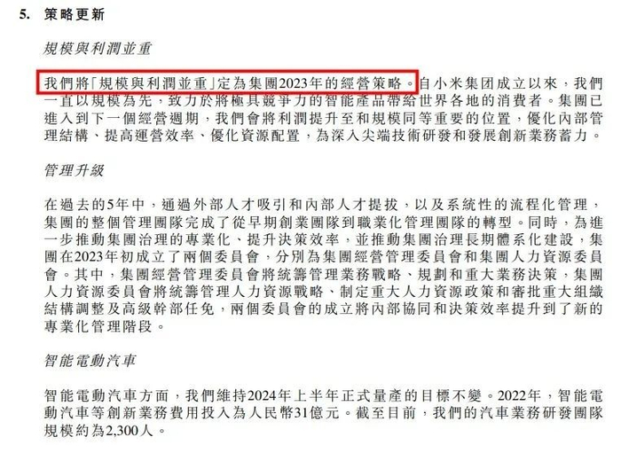 财报还表示,自小米成立以来,一直以规模优先,但现在,集团已经进入到下一个经营周期,2023年小米把“规模与利润并重”定为集团的经营策略,将优化内部管理结构、提高运营效率、优化资源配置,来为深入尖端技术研发和发展创新业务蓄力。