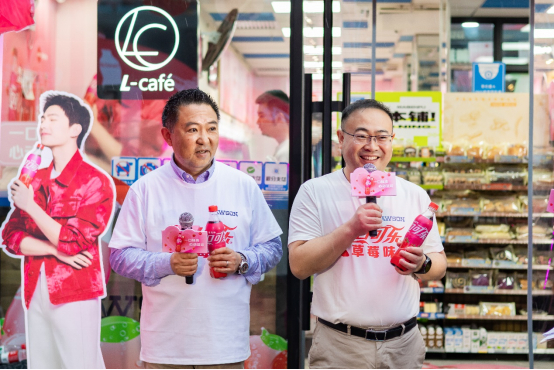 首发仪式现场,辽宁中粮可口可乐党委书记、总经理阮建阳分别将辽宁生产线新鲜出品的草莓味可口可乐送到了罗森(沈阳)便利有限公司总经理时田 贵史先生和罗森(大连)便利有限公司总经理武知 英樹先生手中,并现场介绍了草莓味可口可乐口味选择的初衷和包装设计的理念。作为新品首发的罗森,两位总经理均对草莓味可口可乐的产品定位和包装予以充分肯定,并对其市场前景予以期待。