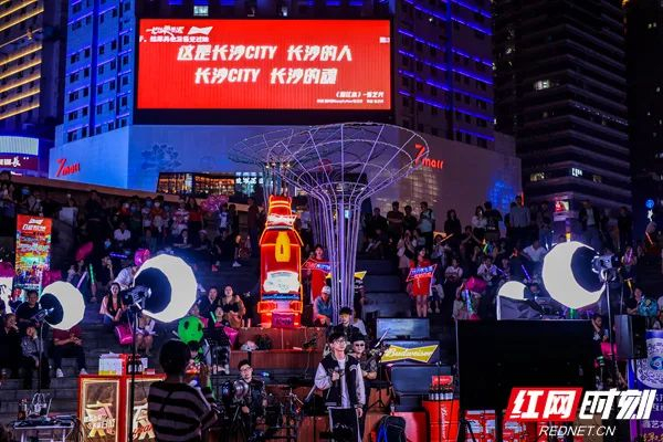 “围着地球转一圈,我还在0731;这是长沙city长沙的人;长沙city长沙的魂,长沙的故事活在长沙的城……”一首高燃热血的《湘江水》唤起了大家的热情,大合唱的声音响彻五一商圈,在城市中心抒发着对长沙的爱。