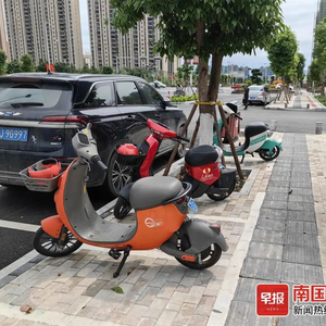 4月25日,记者在贺州市星光路、贺州大道、平安西路等主城区路段看到,部分人行道上规划了共享自行车停放点,上面停放着青桔、人民出行或一嗖智行的共享电动自行车,未见其他品牌共享电动自行车停放或骑行。虽然不少路段规划有停放点,仍存在共享电动自行车乱停乱放现象。