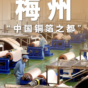 作为印制电路板和锂电池制造的重要材料,铜箔让梅州站上经济“风口”,得以亲历消费电子和新能源汽车发展热潮,并享誉“中国铜箔之都”。