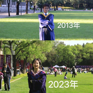 “弥补了去年的遗憾,实现了带娃拍毕业照的愿望,并在10年前老公拍硕士毕业照的地方以同样的姿势再来一次。”冰玉告诉紫牛新闻记者,毕业照拍摄于今年4月29日,“清华大学112周年校庆之际,学校为我们部分往届毕业生补办了学位授予仪式,因此我有机会拍到了和老公同角度的硕士毕业照。”