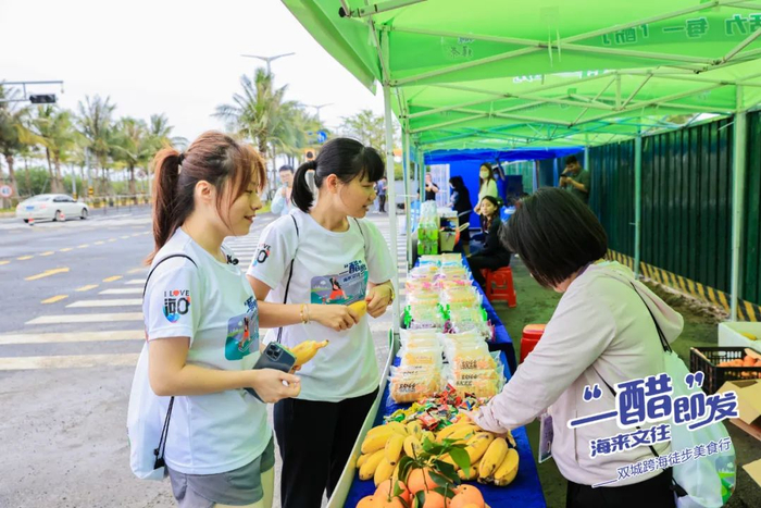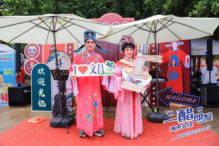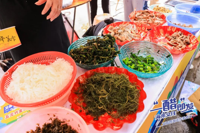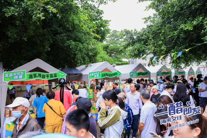 在活动终点特设的“文昌好地方市集”成为活动亮点之一。市集上,琼剧、乐队表演助兴,特色小吃摊位一字排开,糟粕醋、杂粮、海产.......充分满足徒步健身爱好者的味蕾体验。