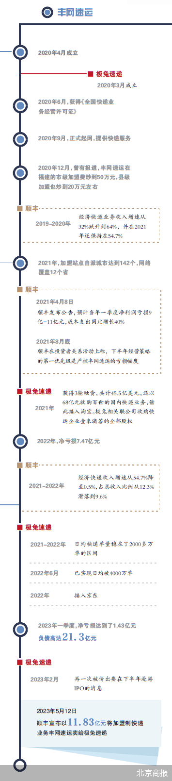 那么,丰网速运当前网络的资源规模有多少?加盟商的押金和加盟费会如何处理?极兔速递又将会如何融合丰网速运?对此,顺丰和极兔速递的相关负责人均未向北京商报记者回应。