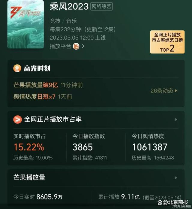 据灯塔专业版,《浪姐4》自5月5日至今,上线10天累计播放9亿次,3次拿下全网正片播放市占率日冠。