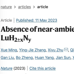 在论文初稿贴到预印本网站arXiv后不到两个月,南京大学教授闻海虎团队推翻美国室温超导研究的工作于2023年5月11日在线发表在《自然》(Nature)杂志上。