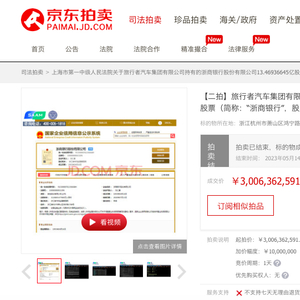 此后,这部分股权上架京东拍卖网,并经历了一次流拍。4月25日,浙商银行公告,旅行者汽车集团持有的公司6.33%股份司法拍卖在4月24日流拍,流拍原因为无人出价。上海市第一中级人民法院将对该笔股权进行第二次公开拍卖。第一次司法拍卖时起拍价为35.28亿元,相当于当时市场价38.52亿元的九折。