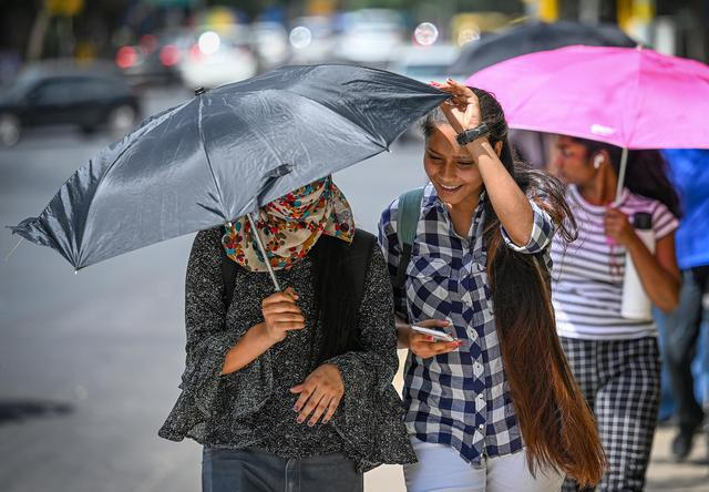 当地时间2023年4月19日,印度新德里,人们打伞躲避高温。