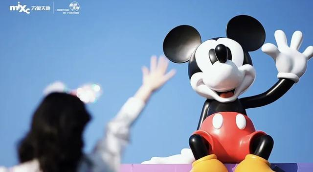 最抢眼的就是“经典米奇”巨型雕塑现身于天桥之上,高达5.5米。