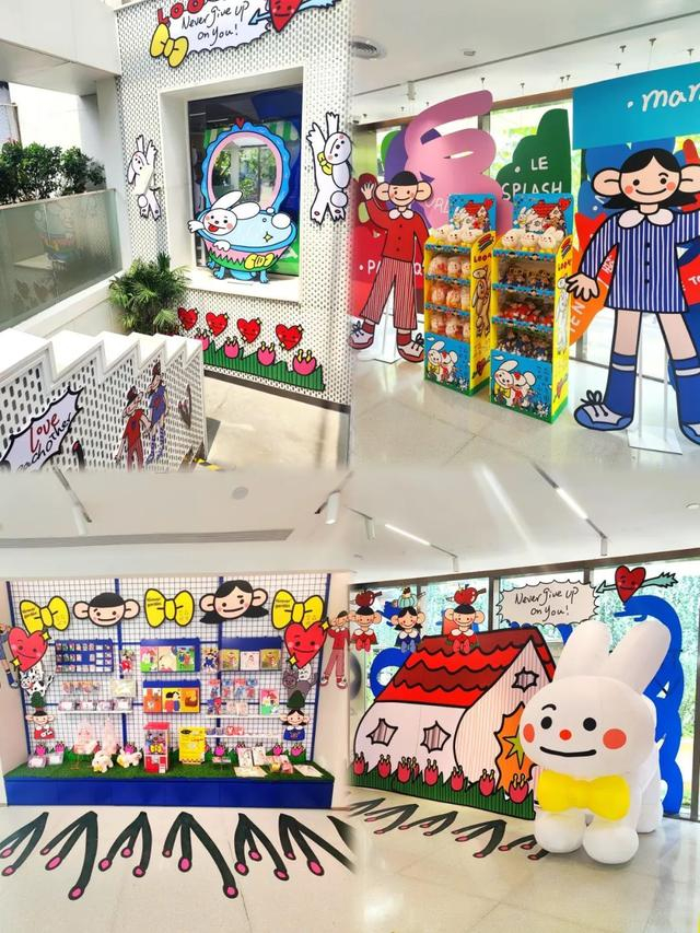 西康路上的mamǎfufú超级百货开了新展,名叫《空森双米de永久花园・不放弃》,用简单的像孩童的笔法、明快的色彩,表现生活的可爱。可可爱爱的年糕兔,吸引很多人去打卡。