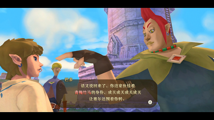 《天空之剑》中的林克,如郭靖一般温雅敦厚甚至显得有点笨,面对塞尔达时的表情温柔与宠溺中带着一份憨厚,而为了拯救塞尔达拿起大师剑后表情则显得坚毅与果决,面对部分怪物与BOSS时甚至显得十分凶狠,玩家能透过屏幕感受到他的焦躁(或者说是自己的焦躁),这是属于恋人受到伤害时另一方独有的不安与愤怒。