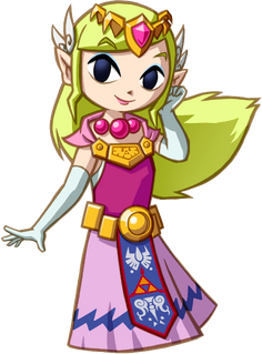 而1991年《众神的三角力量》则初步把塞尔达公主的形象固定了下来,在沿袭上述四个特点的同时,把发色确定为金色,新增了类似精灵(游戏中为海利亚人)的尖耳朵,而服饰色调也定格为红色为主、辅以蓝色和白色,并且往后数十年,塞尔达公主的衣服上几乎都存在“三角力量”的纹饰。