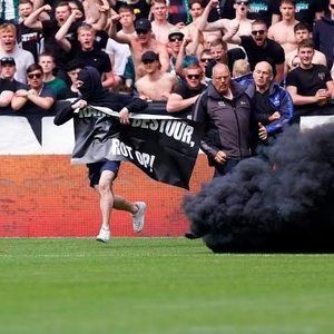 【环球网报道】综合法新社、路透社报道,当地时间14日,荷兰甲级联赛格罗宁根主场迎战阿贾克斯的比赛中,由于球迷多次向场内投掷烟雾弹、烟花等爆炸物,根据现场画面,球场上烟雾弥漫,比赛在开始9分钟后被迫终止。法新社报道称,根据荷兰媒体的说法,格罗宁根目前已确定将降级,这是这家俱乐部23年来首次降级。