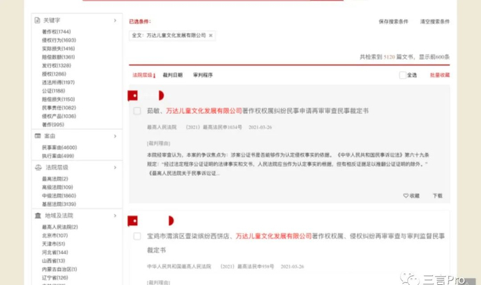 笔者又登录中国裁判文书网查看发现,在已经有判决书的案件中,万达儿童文化发展有限公司涉及案件高达5120篇;