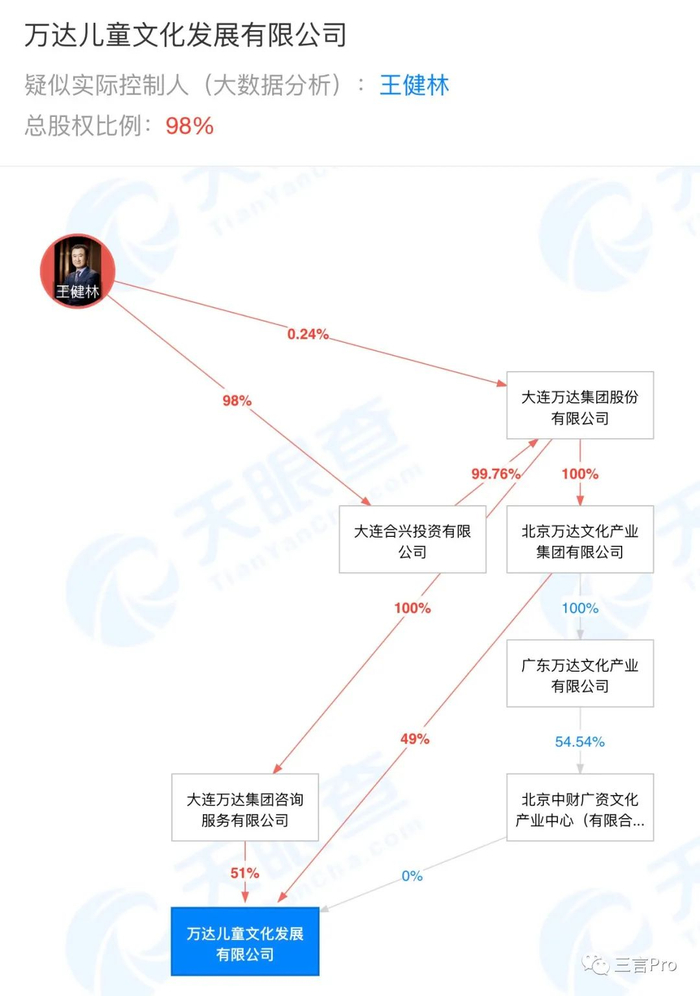 另外,万达儿童的两大股东,都是王健林名下的大连万达集团股份有限公司全资持股的子公司;因此,王健林实际上是万达儿童的实际控制人。