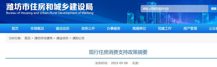 山东潍坊现行住房消费支持政策摘要