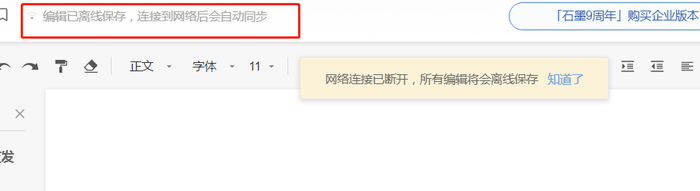此前,有多位网友反馈,石墨文档弹出网络连接已经断开的提示,看上去可以写东西却无法保存内容,刷新之后内容也不见了。