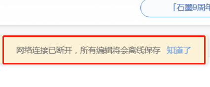 崩溃后一直显示“网络连接已断开,所有编辑将会离线保存”