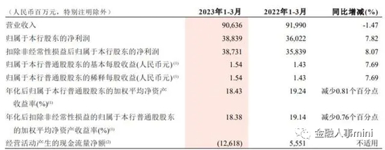 在最新的数据中,2023年一季度,招商银行实现营业收入906.36亿元,同比下降1.47%;实现归属于该行股东的净利润388.39亿元,同比增长7.82%。