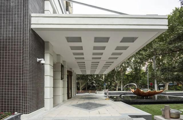 修缮设计根据历史原状去除了多余的装饰,拆除了雨篷立柱,按历史风格恢复了悬挑的雨篷和入口处有装饰艺术特色的灯具。