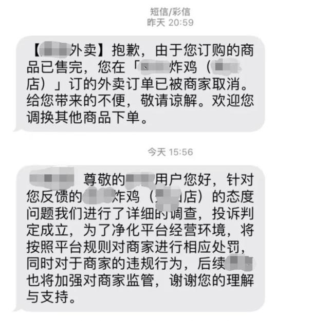 张先生告诉记者,5月14日,他向外卖平台反映了自己的遭遇。5月14日下午,张先生收到外卖平台短信称,“进行了详细的调查,投诉判定成立”,“将按照平台规则对商家进行相应处罚,同时对于商家的违规行为,后续也将加强对商家监管”。