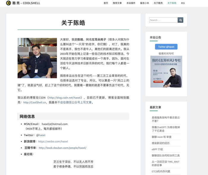 与此同时,陈皓在网络上也非常活跃,经常更新自己的技术思考和想法。比起原名陈皓,他的网名“左耳朵耗子”更为人熟知,还有不少后辈程序员亲切地称呼他为“耗子叔”。由于陈皓在广大程序员群体中拥有广泛的知名度,因此他去世的消息一度登上了微博热搜,大家纷纷表达对他的悼念。