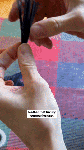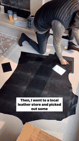 呐对的,视频开头他手上拿着的那块皮,就是他准备动工的材料。