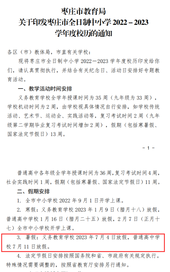 山东16市中小学2023暑假时间公布