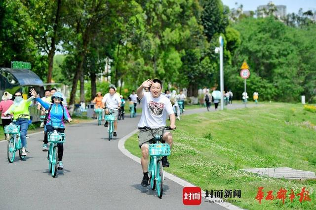 双“青”合体:晴朗周末成都百余市民骑青桔单车环青龙湖共迎大运