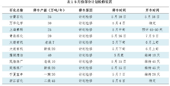 5月总体来看,新增产能亦有投放预期,一定程度上抵消了装置检修带来的产量损失量。