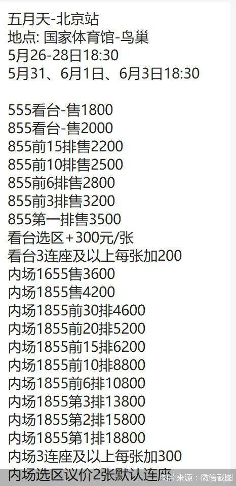 被问及五月天这场演唱会,到目前为止共抢到多少票时,该黄牛表示,“只能说各档位都有票。想要什么都有。”