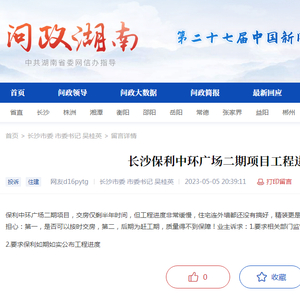 中国质量新闻网讯(刘着之)近日,红网《问政湖南》平台显示,长沙保利中环广场的业主在该网站进行了投诉维权,称该项目工程进度缓慢。针对此问题,相关主管部门已进行回复,称已加强督促项目进度。