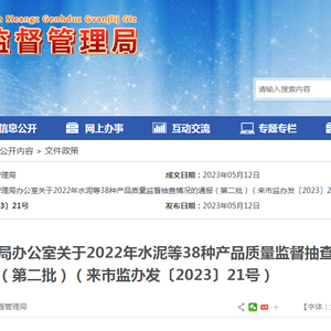 来宾市市场监督管理局办公室关于2022年水泥等38种产品质量监督抽查情况的通报(第二批)