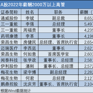 A股上市公司董事长、总经理一年能挣多少?伴随着2022年年报收官,上市公司高管薪酬随之揭晓。