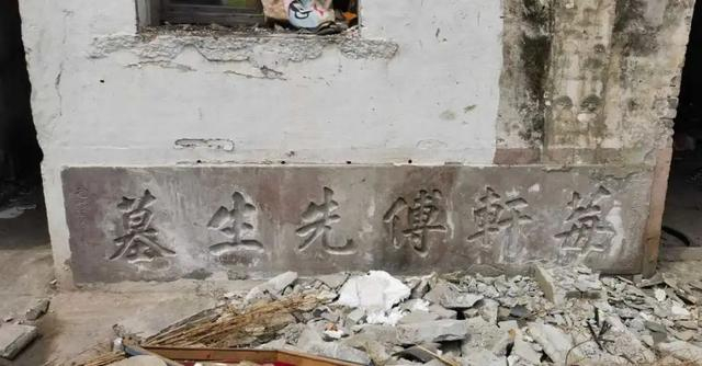 这是一块清代墓碑,嵌在一间房屋的墙基里。房屋拆迁时,石碑前一堵墙被拆除,这才露出了真容。