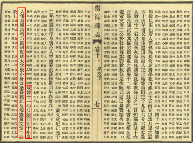 值得一提的是,傅家发达后热心公益。“民国《镇海县志》有记载,傅莓轩的父亲傅昌礼和叔叔傅昌珩,在同治十年曾捐资重建鲲池书院,也就是现镇海中学的前身。”陈一鸣说。