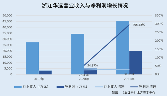 据浙江华远签署于2023年2月23日的招股说明书(以下简称“招股书”),2019-2021年及2022年1-6月,浙江华远的营业收入分别为27,368.47万元、34,574.47万元、45,400.85万元、20,420.18万元,净利润分别为3,277.62万元、5,059.74万元、19,993.56万元、2,584万元。