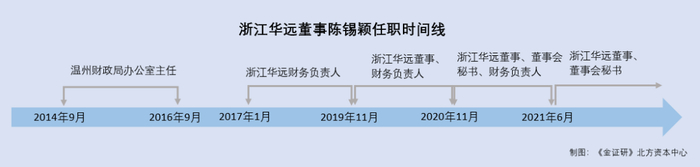 2017年1月至2019年11月,陈锡颖担任浙江华远财务负责人,2019年11月至2020年11月,担任浙江华远董事、财务负责人,2020年11月至2021年6月,担任浙江华远董事、董事会秘书、财务负责人,2021年6月至招股书签署日2023年2月23日,担任浙江华远董事、董事会秘书。