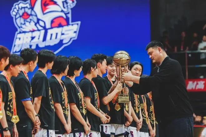 在经过四节比赛的较量后,长沙雅礼中学女篮以80:62的比分战胜清华附中女篮,夺得全国总决赛女子组冠军!中国篮协主席姚明为她们颁奖。