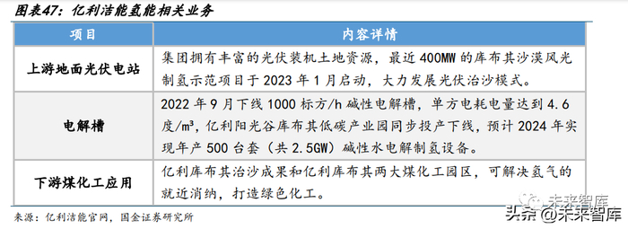打造新能源土地+电解槽+下游自有化工一体化链条,深耕全国最大新能源绿氢规划内 蒙古地区。大力推进风光氢储产业集群,当前内蒙古绿氢项目规划量已达 72 万吨, 对应约 15-20GW电解槽装机,占比达到全国总量的 42%;同时依托大西北优质资源, 集团拥有丰富的光伏装机土地资源,具备以光伏资源兑换电解槽订单的优势。