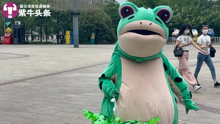 不过,今年童女士明显能感受到,穿戴青蛙人偶服在街头“卖崽”的生意没有去年那么火爆了,“也考虑过以后‘网红青蛙’会过气,会被新的形象取代,所以目前也在做新的努力。”