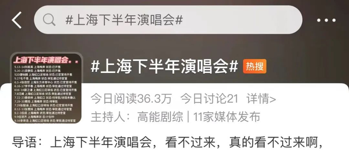 5月14日,歌手毛不易上海演唱会宣布定档5月27日,成为近期又一官宣落地上海的演唱会。据不完全统计,今年下半年还将有近20场演唱会有望在上海举行。“上海下半年演唱会”词条也于近日持续冲上热搜,网友纷纷表示,上海这一“追星圣地”回来了!