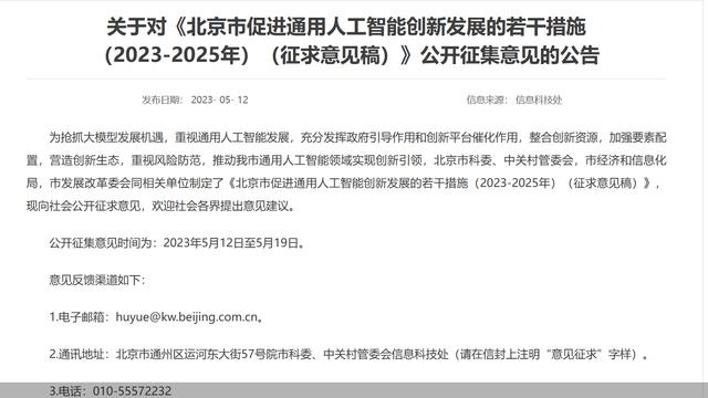 由ChatGPT掀起的大模型浪潮仍在继续。被誉“AI第一城”的北京,率先将重点落在了政策上。5月12日-19日,《北京市促进通用人工智能创新发展的若干措施(2023-2025年)(征求意见稿)》(以下简称《若干措施》)向社会公开征求意见,5方面21条措施涵盖了算力、数据要素、大模型技术、应用场景等诸多受到广泛关注的领域。而在AI“新基建”领域,《若干措施》也画出了一条涵盖算力、算法以及数据训练的清晰图谱。