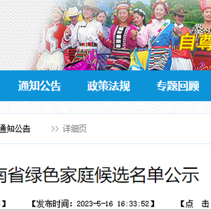 现将2023年云南绿色家庭候选名单向社会进行公示,公示时间为2023年5 月 16 日至 5月 22日(5个工作日)。如有异议,请以书面形式反映,并署真实姓名和联系地址,于2023年 5月 22日前邮寄至省妇联家庭和儿童工作部。(直接送达的以送达日期为准,邮寄的以邮戳为准。)