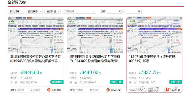 东方资产是另一个故事,奥园科星在执行剥离的过程中,将部分土地及不动产抵押给了东方进行了融资,本身是足值抵押,但是东方的意思是,必须给我一些易于变现的担保物,故将上市公司的部分股票追加质押给了东方资产。本身不违约是皆大欢喜的事儿,在奥园违约之后,东方除了查封拍卖了不动产和土地外,对于股权也直接进行了保全,作为这笔业务潜在的额外收益。