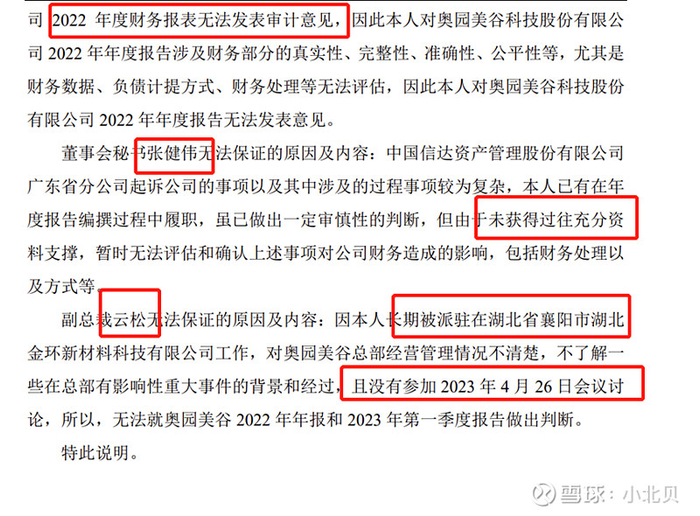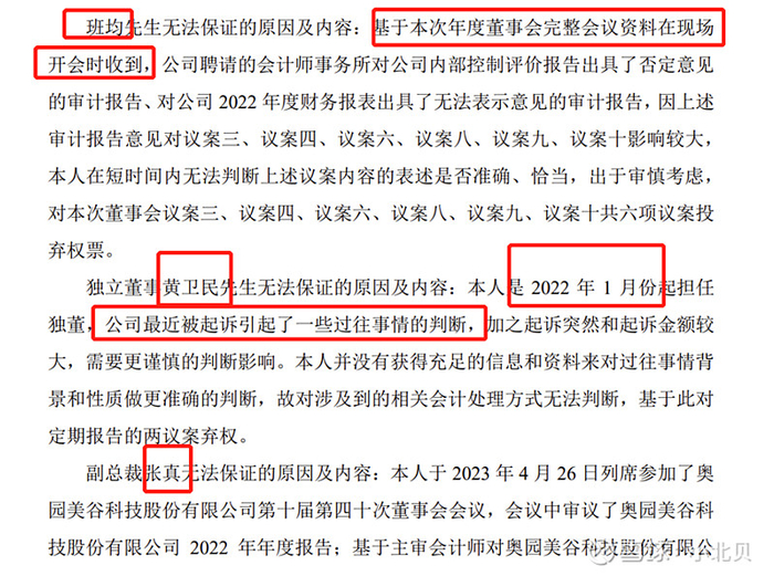 奥园另一个被人诟病的原因是部分高管独董对于财务报表不去发表意见,我们可以详细看他们不发表意见的理由: