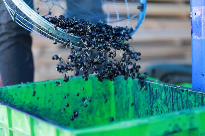 每天早上6点到9点进行采果,采摘果实饱满的大个黑枸杞,保证成熟的口感和出汁率。